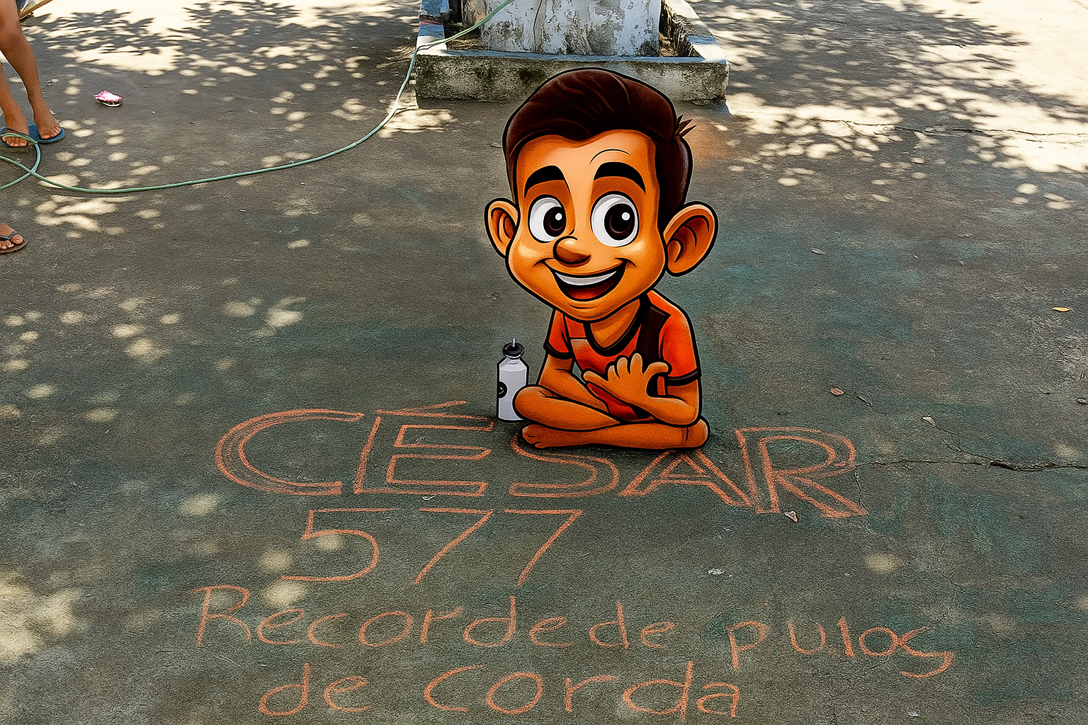 Na manhã de domingo, 06 de julho de 2025, o menino César obteve a incrível marca de 577 pulos, quebrando o recorde de 337 pulos de Bernardo, que durou menos de um mês, quando bateu a marca de 325 pulos, sustentada pelo menino Antônio, havia mais de dois anos.